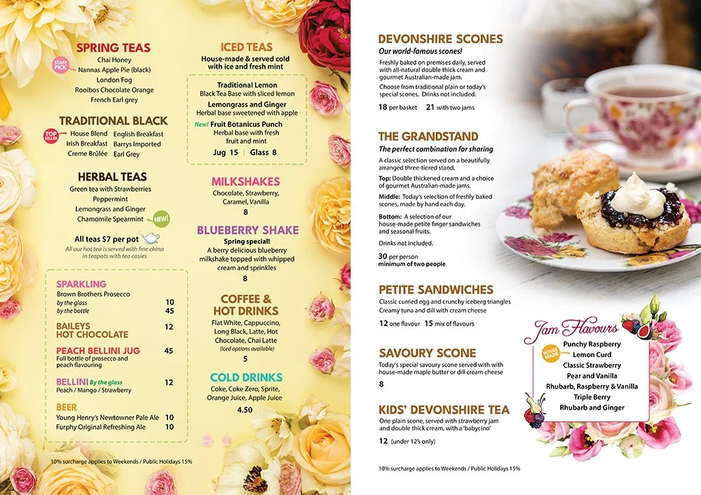 Freshly baked on premises daily, served with all-natural double thick cream and gourmet Australian-made jam. Choose from traditional plain or today's special flavour scones. Drinks not included.